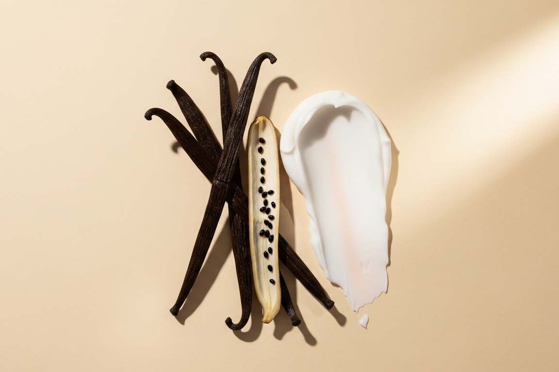 Considering all the challenges of using words to describe a fragrance, we can try to detail the feeling. Most would agree that vanilla smells rich and creamy, almost edible, evoking a cake or a velvety custard. In this gourmand side of the scent, we also think of caramel and chocolate when portraying the scent of vanilla. Sweet and warm, we can also notice a floral and woody character that adds further depth to any body cosmetic, or even to some lipsticks and other face makeup.